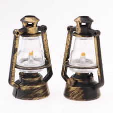 2pcs 2.3" Dollhouse Miniature Vintage Metal Kerosene Lamp Room Desk Ornaments