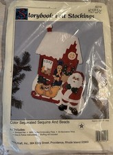 Vtg New Christmas Storybook Felt Stocking Kit Santas Toy Shop Hobby Kraft 9216