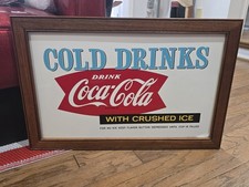 Vintage Coca Cola Metal Sign Cold Drinks With Crushed Ice Advertising