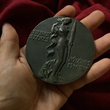 1946 Nude Lady Theater Mask Antique Bronze Medal Plaque Budapest Hungary Jewish