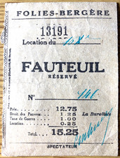 1918 circa FOLIES-BERGERE - WWI ERA antique theatrical show ticket PARIS, FRANCE