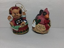 Set Of 2 Vintage Music Box Christmas Tree Ornaments Bear And Bird Description