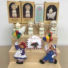Vintage 7pc Mixed Lot Christmas Ornaments Precious Moments Raggedy Ann Music Box