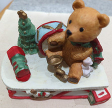 Vintage Toyland Music box Teddy Bear Rocking Horse Train Drum Ceramic Figurine