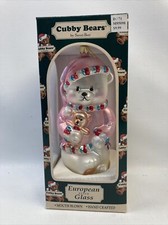 Cubby Bears Glass Hand Blown Ornament Pink 1998 6 In. NIB Vintage Santas Best