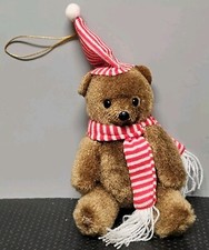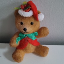 Vintage Plush Poseable Mini Teddy Bear Christmas Ornament about 4 1/2" tall