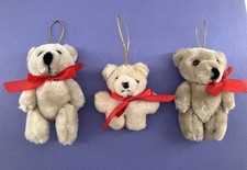 Vintage Plush Teddy Bear Jointed Poseable Christmas Ornament Lot 3”- 4" Lot of 3
