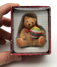 Vintage Christmas Ceramic Ornament Tan Teddy Bear with Ball