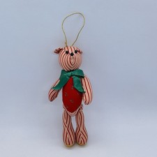 Vintage Wood Teddy Bear Christmas Ornament 3 7/8" Taiwan