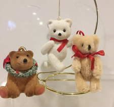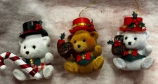 Vintage Handmade Teddy Bears Christmas Ornaments Lot 3-3.5" Ceramic D4688