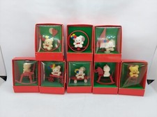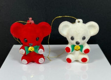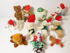 Vintage Flocked Christmas Teddy Bears Mouse Panda Ornaments Figurines Lot C6364