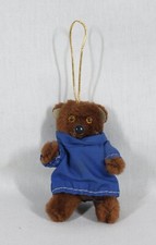 Vintage Plush Teddy Bear Christmas Ornament Brown Tan Blue Bow