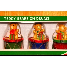 Vintage Teddy Bears on Drums Christmas Ornaments Set of 4 Holiday Decor Boxed