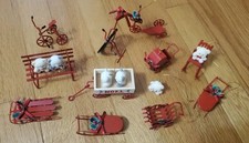 Vintage Avon Teddy Bears on Red Metal Ornaments Lot of 3 Rocker, Bench &Tricycle