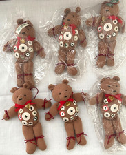 Vtg Brown Plush Teddy Bear w/ Buttons Ornament Lot of 7 Midwest Cannon Falls