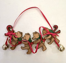 Kurt S Adler Wooden Marching Teddy Bears Hanging Vintage Christmas Ornament