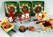 Vintage Lot Teddy Bears 3 Mini Christmas Ornaments Beige Boyd's Beverly Hills