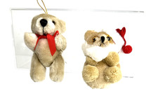 VTG Velvet Flocked Teddy Bear Christmas Ornaments Lot 2 Holiday Figurines