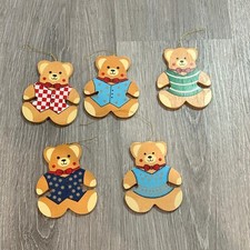 Vintage Lot 80s TEDDY BEARS CHRISTMAS Small Wooden Christmas Ornaments 3" READ A