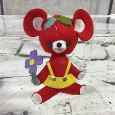 Vintage Plush Felt Teddy Bear Red Made In Japan Ornament Purple Flower