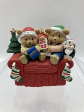 Vintage 1997 Westmar Christmas Ornament Teddy Bears Penguin on Sofa 2" VGC