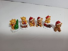 Vintage Teddy Bear Christmas Ornaments Set of 6 Resin Bears Santa Hats