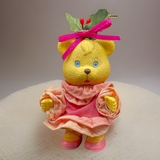 Vintage Teddy Bear Pink Young Girl Christmas Ornament Kitsch GUC