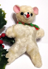 VTG Miniature Pure Wool Stuffed Plush Teddy Bear Ornament Christmas - see detail