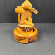 VINTAGE NATIVITY MANGER SCENE OLIVE WOOD MUSIC BOX BETHLEHEM HAND CRAFTED