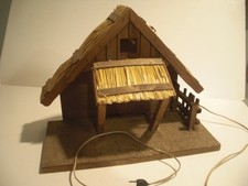 Vintage 1930s Germany Lighted w/Music Box Wood/Straw Nativity Manger Creche