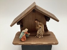 Vintage Anri Mini Small Wood Crèche Nativity Lot 3” Joseph 2.5” Mary Music Box