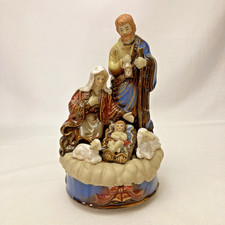 Nativity Scene Wind-Up Music Box 8" Hand Painted Ceramic Jesus, Mary & Joseph