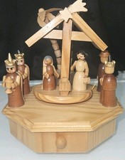 Vintage Erzgebirge Wood Nativity Music Box Hand Carved Motion “Silent Night”