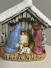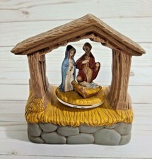 Vintage Nativity Christmas Music Box Ceramic Plays “O Little Town of Bethlehem”