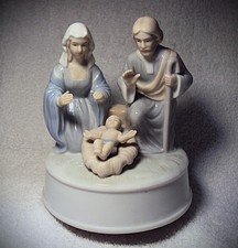 Vintage Porcelain Nativity Scene Music Box Mary Joseph Jesus VGC in Box