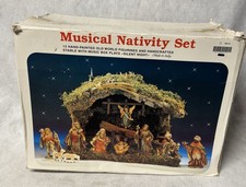 Vintage Nativity Set W/ Music Box Away In A Manger Song Christmas Jesus