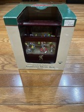 MR. CHRISTMAS 6x6x5” ILLUMINATED MUSIC BOX WOODEN SANTA & ELVES ANIMATED