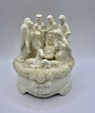 Gorgeous Vintage Christmas Nativity Pottery Ceramic Music Box Bisque Glazed