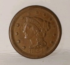 Antique 1854 1c Braided Hair Large Cent Penny Coin NICE
