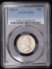 1932 S WASHINGTON Quarter Dollars Silver Coinage PCGS AU-53