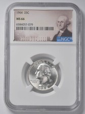 MS66 1964 Washington Quarter NGC - Special Lbl - 90% Silver
