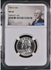 MS66 1964-D Washington Quarter NGC - Special Label - 90% Silver