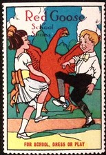 Red Goose School Shoes Dress Play Children Dance Advertising Poster Stamp c1920s