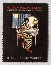 c1915 Edison Mazda Lamps Is Your House Wired Advertising Poster Stamp