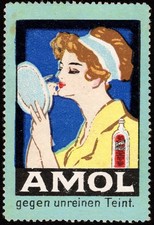 GERMAN ADVERTISING POSTER STAMP - AMOL - AGAINST BLEMISHED COMPLEXION