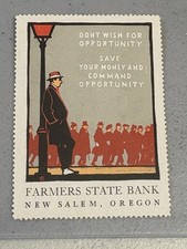 Vintage FARMERS STATE BANK Advertising Poster Stamp - New Salem, Oregon