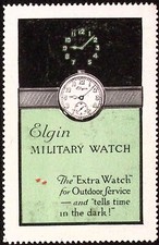 Elgin Military Wach Tells Time in the Dark Advertising Poster Stamp c1920s