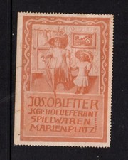 German Advertising Stamp - Jos. Obletter Toy Store - Two Girls