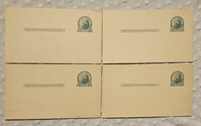 4 Antique Prepaid Jefferson 1 Cent Green Stamped Postcard With Red Cross On Back