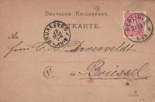 RARE 1882 ANTIQUE Deutsche Reichspost POSTCARD sent from Berlin to Brussels